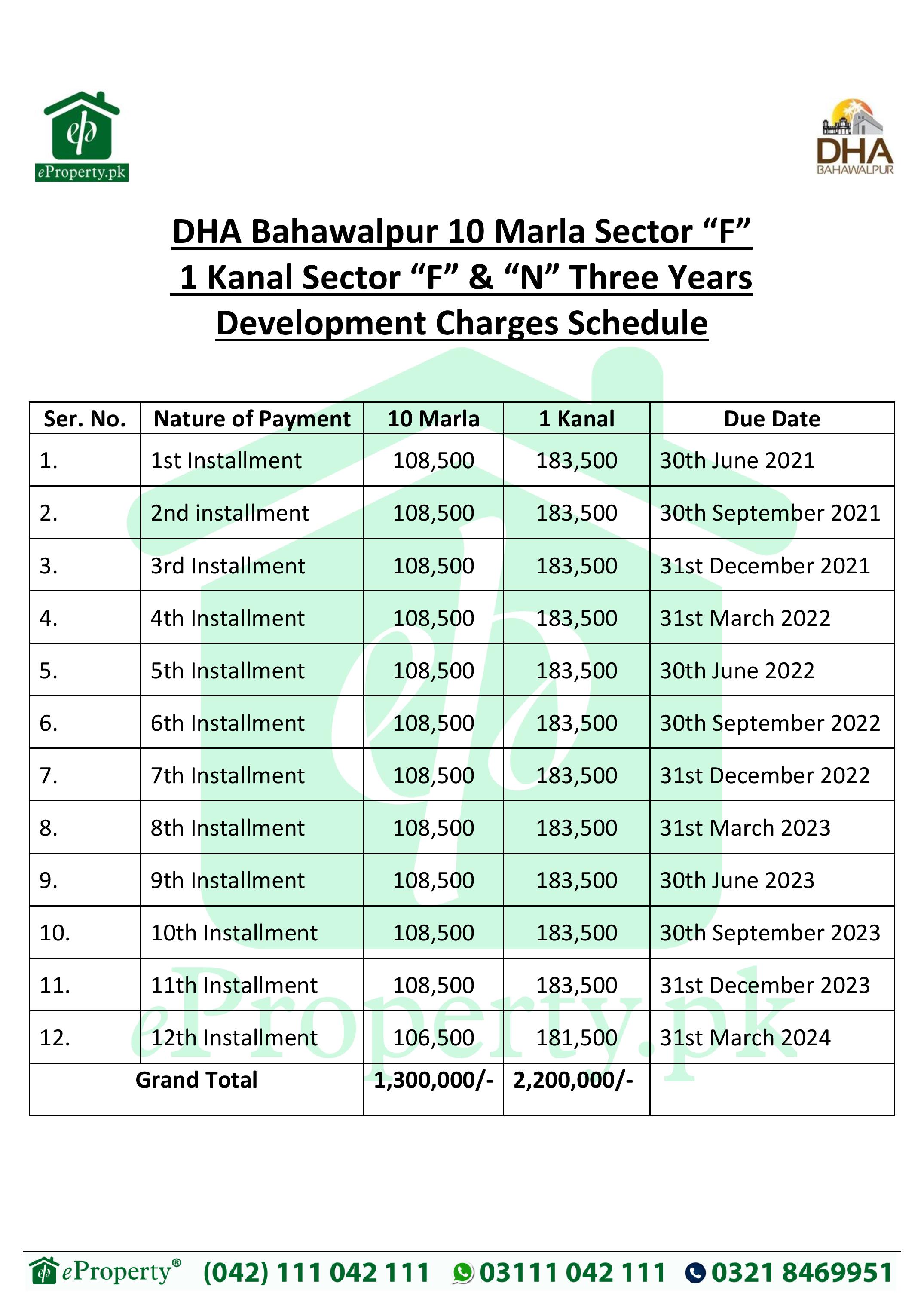 DHA Bahawalpur Trasnfer Fee Schedule: April 2024