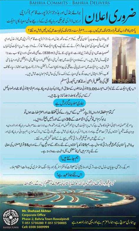 Bahria Town Mega Project at Bundal & Buddo Island Port Qasim