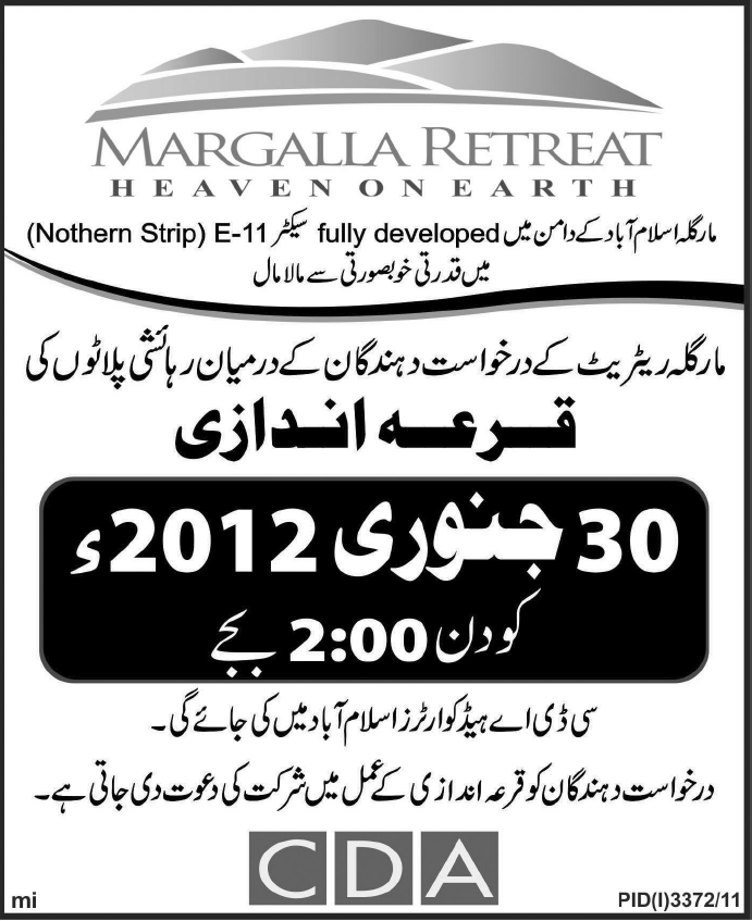 Capital Development Authority (CDA) Margalla Retreat Islamabad Balloting on 30th January, 2012.