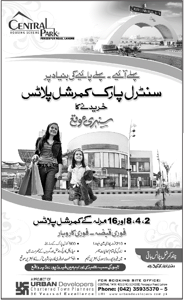 Central Park Lahore Ferozpur Road announced booking for Commercial Plots, advertisement was published in Daily Urdu Jang Lahore as on June 04, 2011.