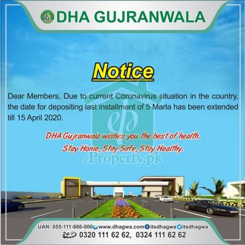 DHA Gujranwala Extended date for 7th Installment upto 15th April, 2020
