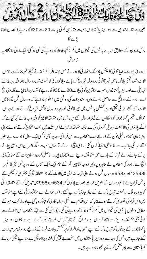 DHA Lahore Phase 8 change of plot allotment after 2 years