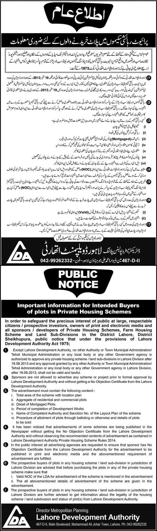 Lahore Development Authority (LDA) issued a check list for Buyers before making buying decisions in Private Housing Schemes Lahore