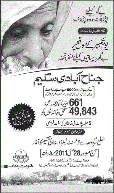 Allotment letters to be distributed among shelter-less in Jinnah Abadi Schemes.