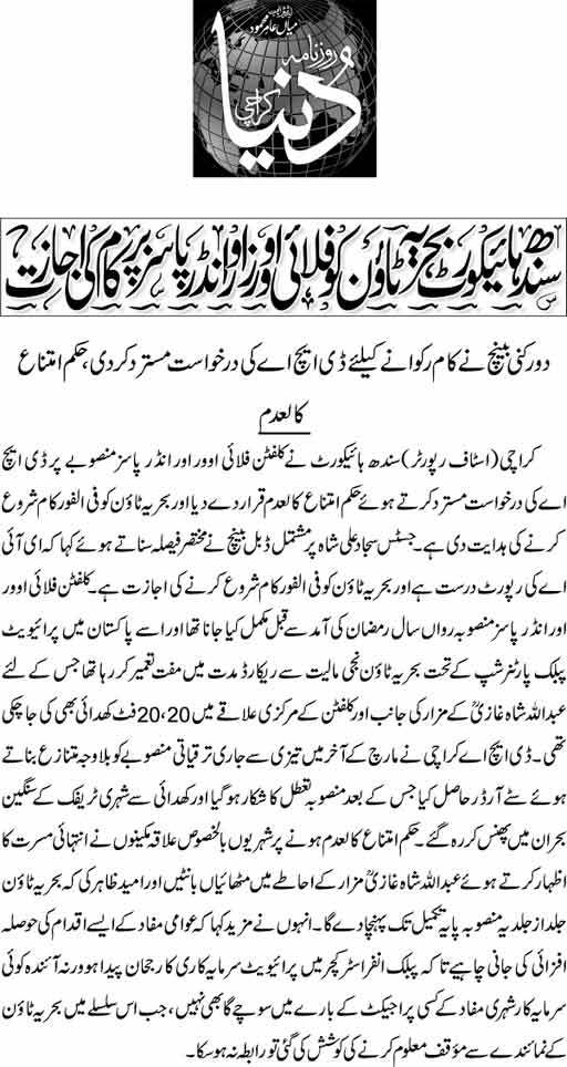The Sindh High Court on Friday allowed Bahria Town to immediately start work on Clifton Flyover and dismissed the petition filed by the Defence Housing Authority against the Clifton project observing that the DHA concerns were duly considered by the Environmental Protection Agency